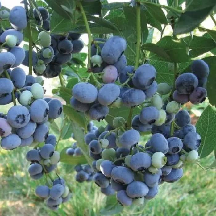 Bonus blueberry is one of the largest-fruited varieties among all existing selections. It is the most in-demand mid-season variety. The bush is strong, with robust upright shoots, growing up to 1.5–1.7 m in height and spreading about 1.2 m in diameter. Very productive, this promising selection was bred in the USA by the University of Michigan. It is cultivated as a main industrial variety on many plantations in America and Europe. Yield per bush is up to 8 kg. The berries are incredibly large for blueberries, reaching 25–30 mm in diameter, slightly flattened, with excellent dessert taste, firm, light blue in color, with a small scar and waxy bloom. It has relatively late flowering periods and high disease resistance. 🍇