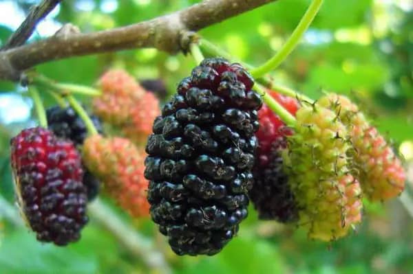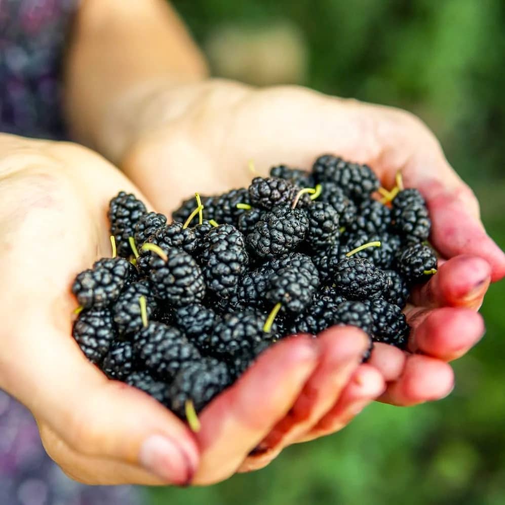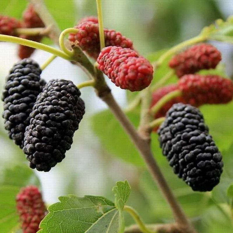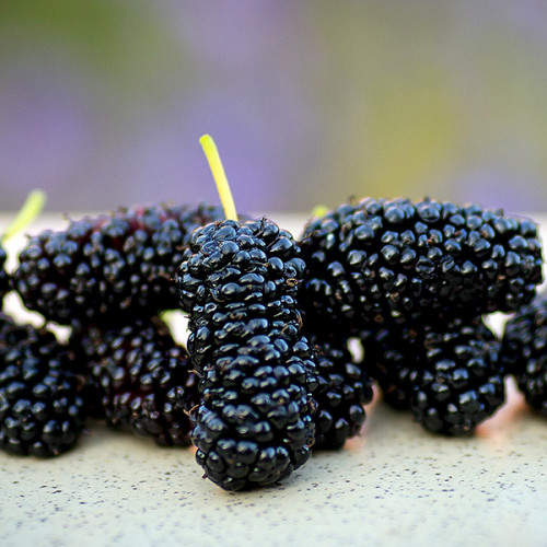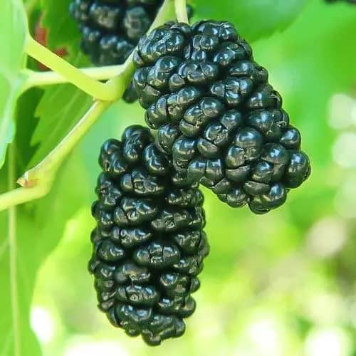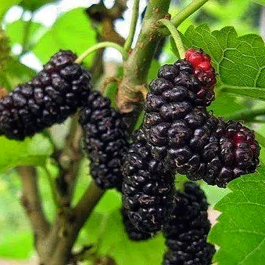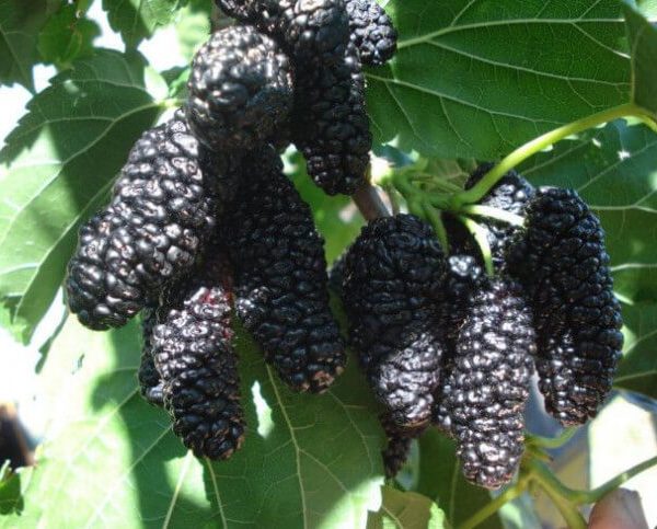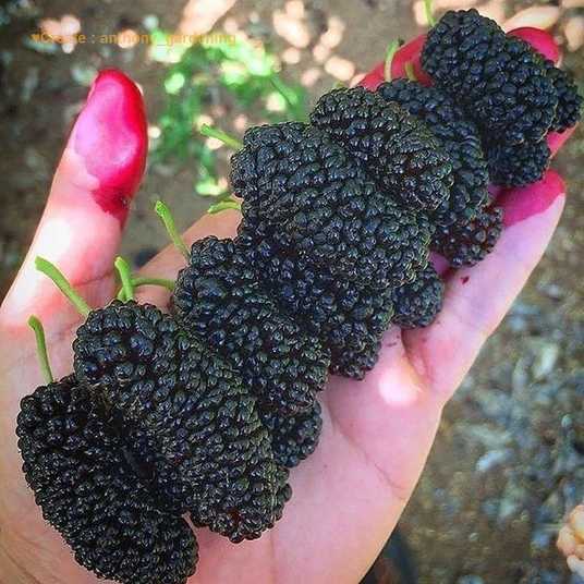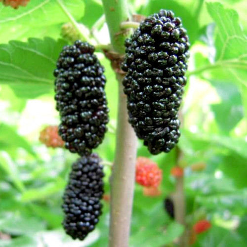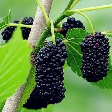 الثمار: أرجوانية داكنة، بطول 5–8 سم، ووزن 6–7 غرامات