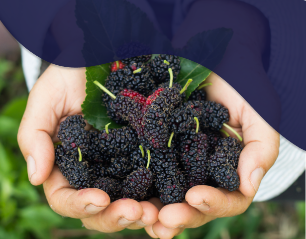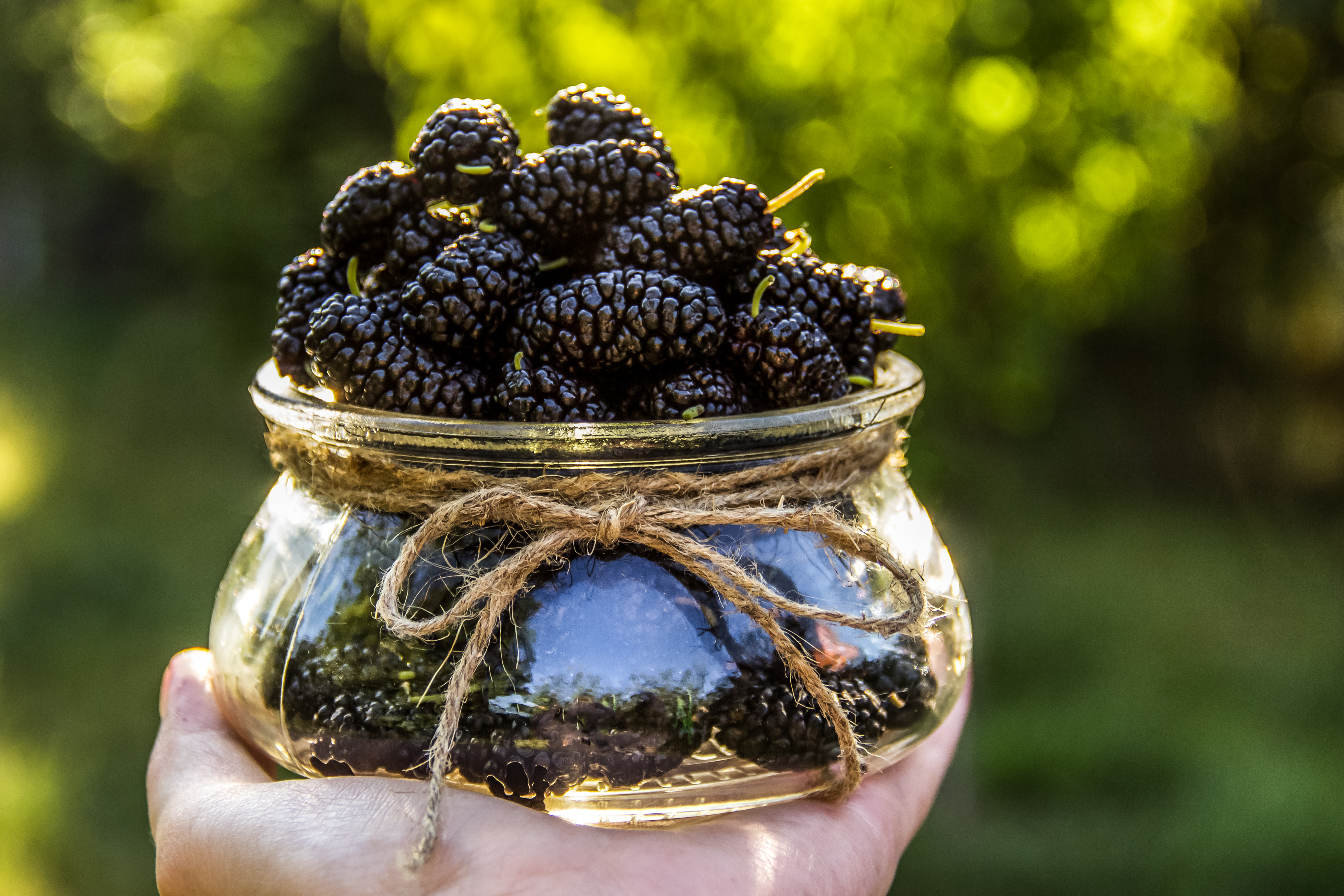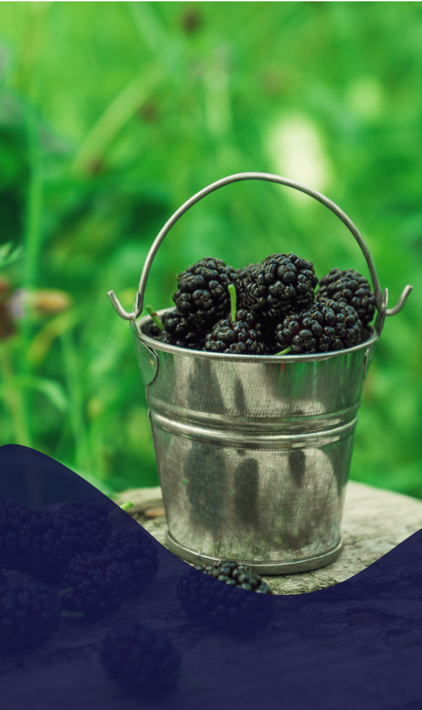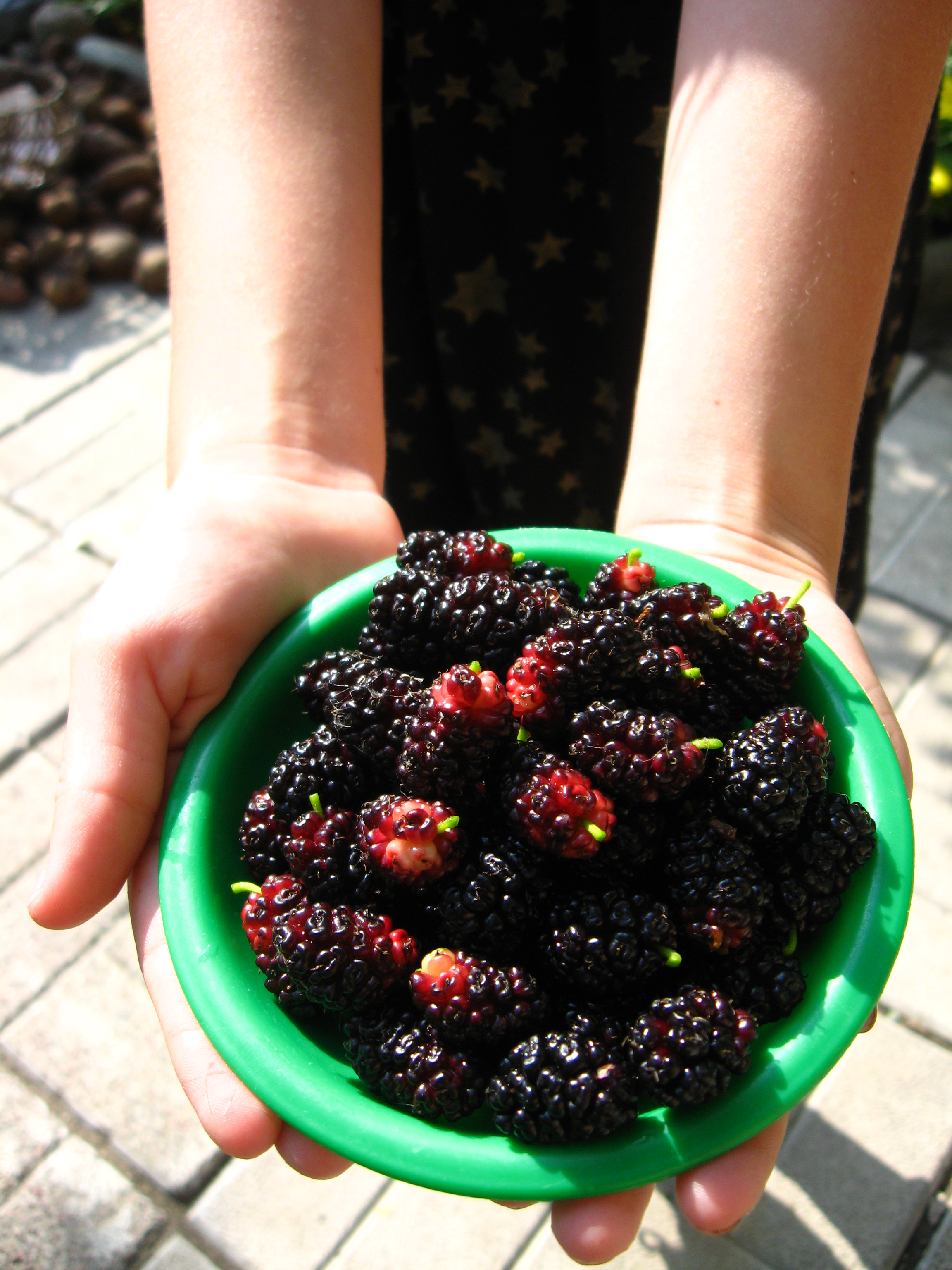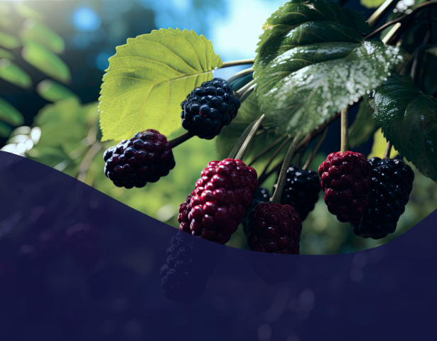 الثمار: أرجوانية داكنة، بطول 5–8 سم، ووزن 6–7 غرامات
