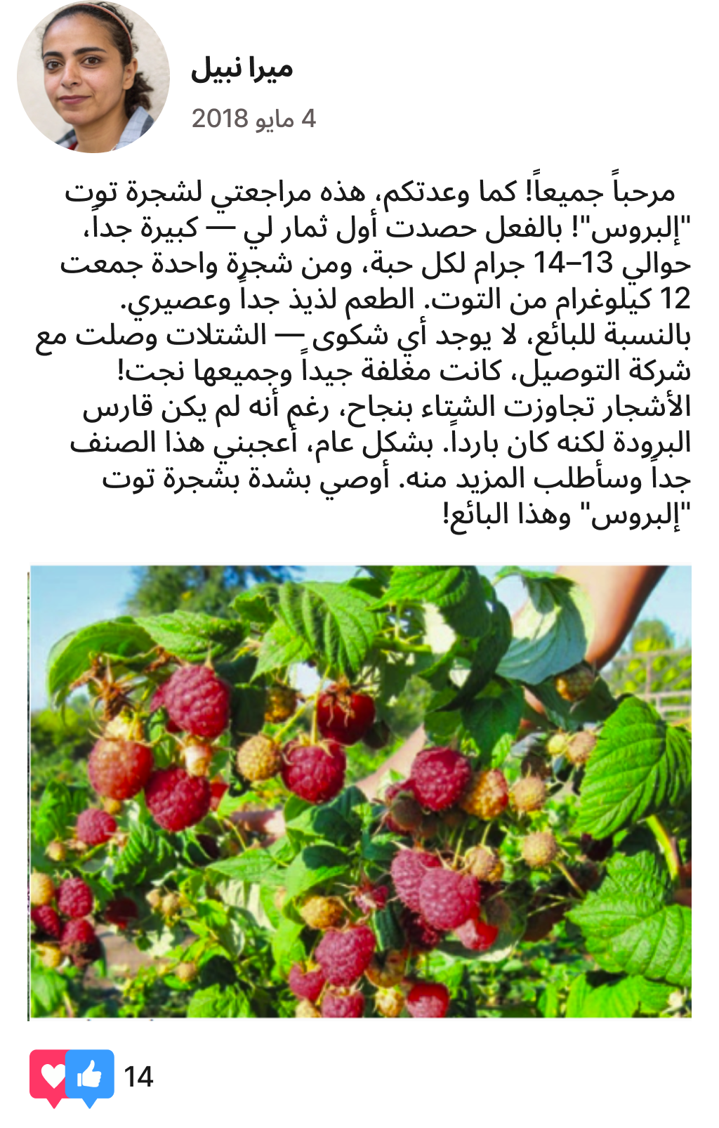 متجرنا الإلكتروني هو المورّد الرسمي الوحيد لشتلات شجرة التوت "إلبروس" القادمة من هولندا،
