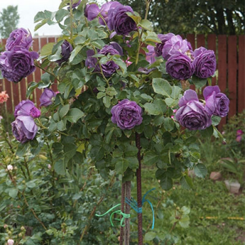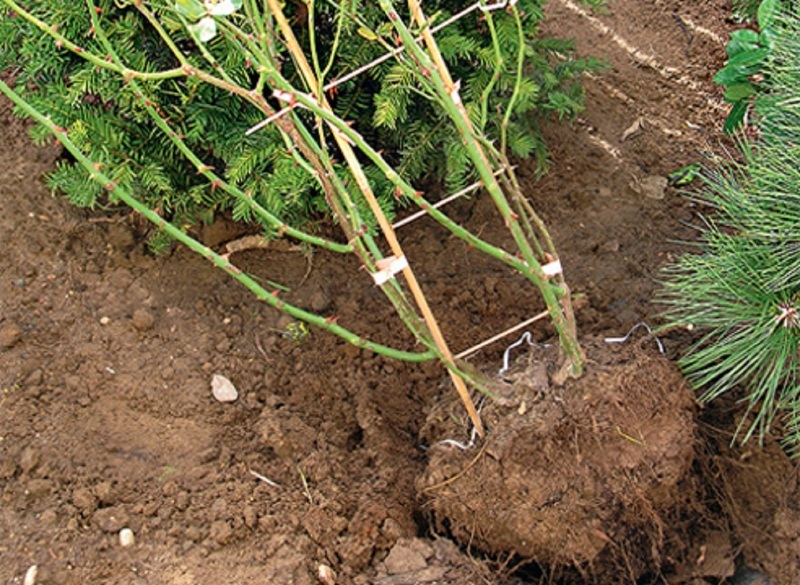 - Розалардын бутагын тирөөгө жакын басып, аларды жумшак материал менен бекитиңиз, өсүшүнүн туура багытын камсыз кылуу үчүн.