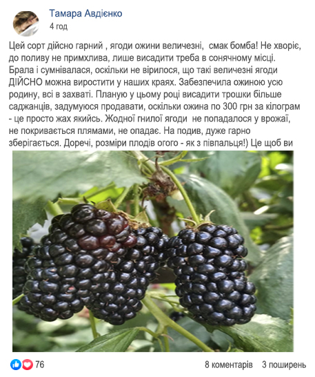 Меваси йирик, мазали, ширин - оғирлиги 18 граммгача.