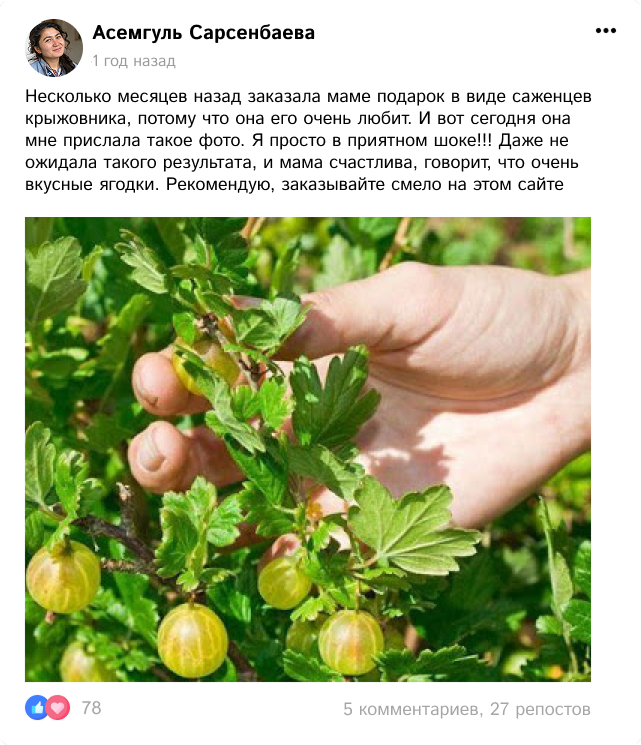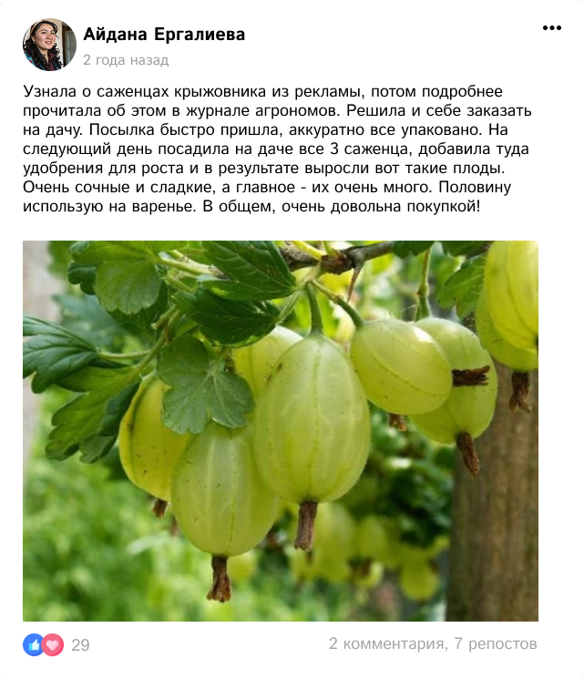 Кўчатлар тўпламини супер чегирма билан буюртма қилишга шошилинг ва ҳозироқ крижовник етиштиришни бошланг!