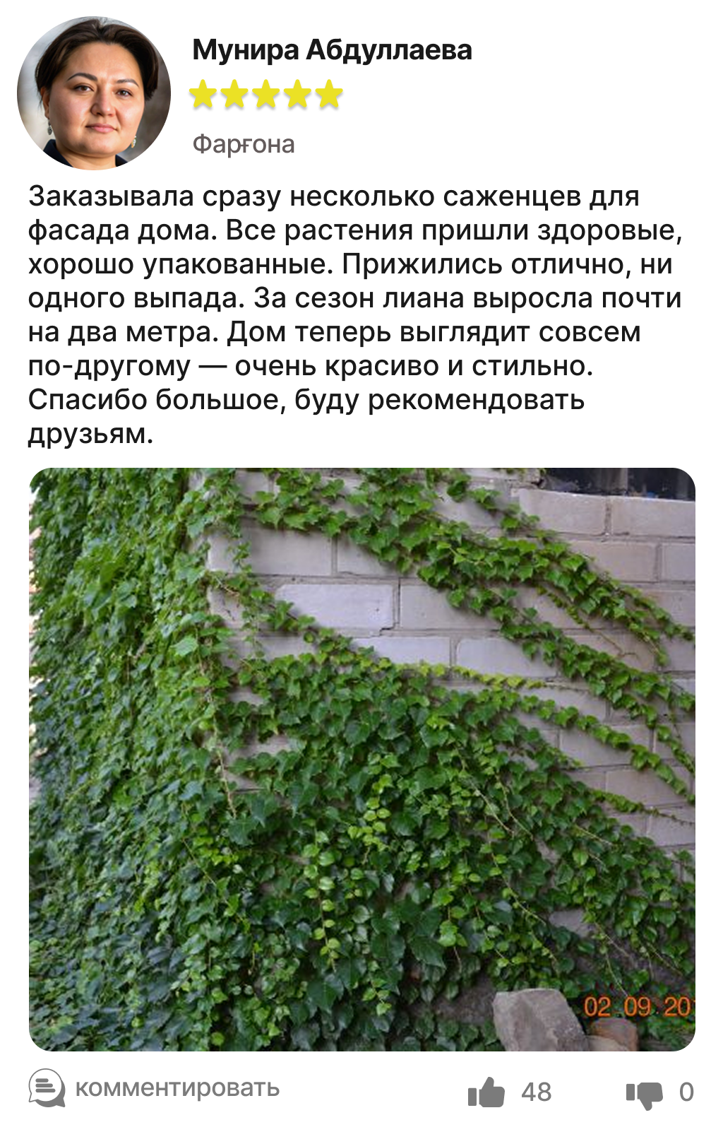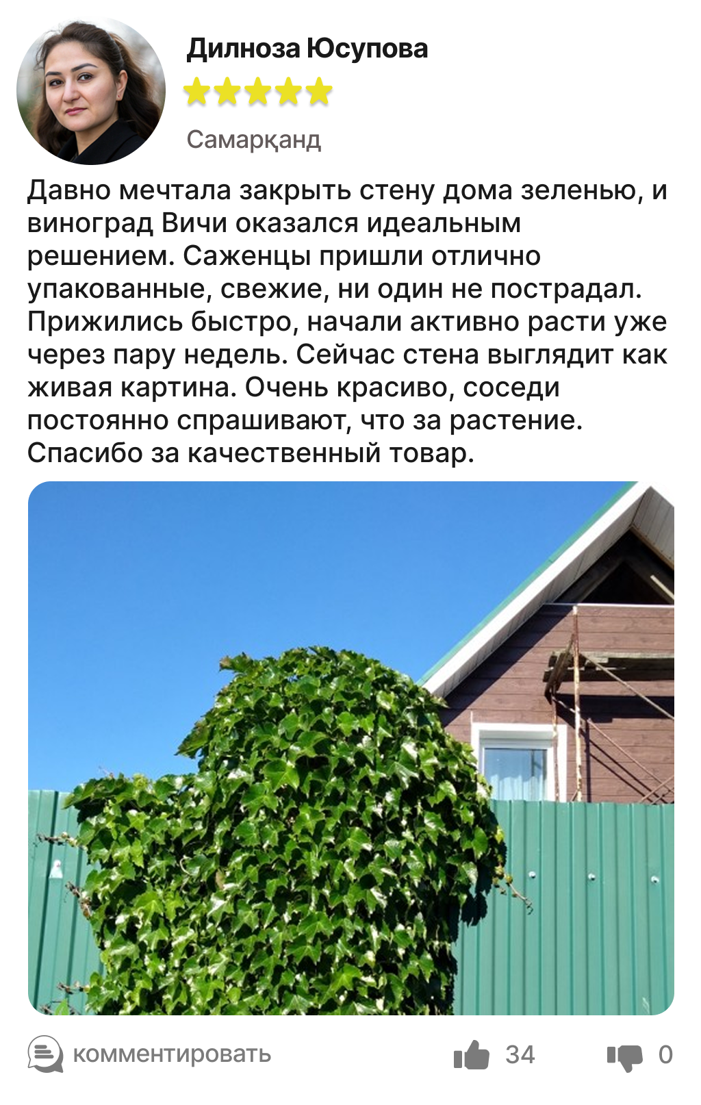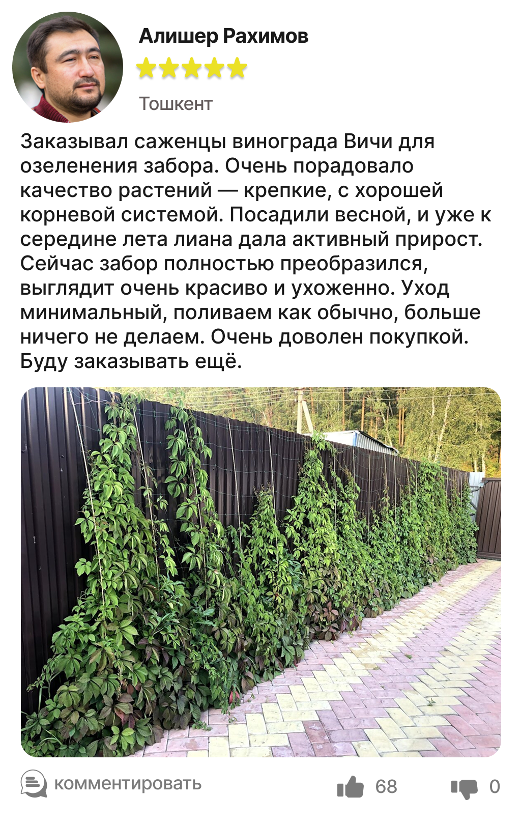 Вичи узуми - бу оддий деворлар, тўсиқлар ва биноларни жонли яшил манзарага айлантира оладиган премиум даражадаги декоратив лиана. Унинг ялтироқ, зич барглари ҳашаматли каскад ҳосил қилиб, қулайлик, услуб ва парваришлаш ҳиссини уйғотади.